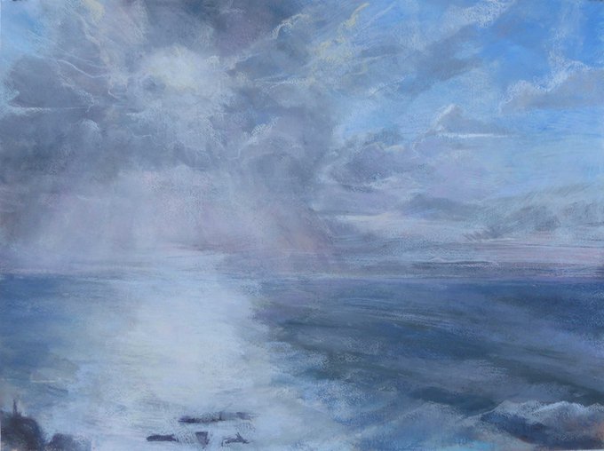 Beautiful #Scottish skies captured in #pastel #mixedmedia on paper by #Teddington artist Kimm Stevens. Here a wintery setting sun at Redpoint #Gairloch + an autumnal sunset from #Stoer lighthouse.