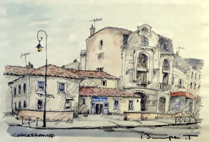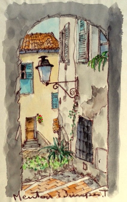 #水彩画 #フランス #Menton #Carcassonne