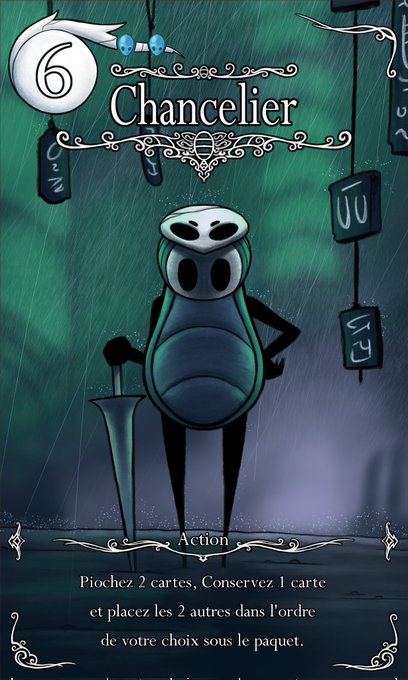En ce moment entrain de m'amuser à personnaliser ma version du jeu de carte #loveletter de @Zmangames_ en recréant les cartes dans l'univers de #HollowKnight de @TeamCherryGames