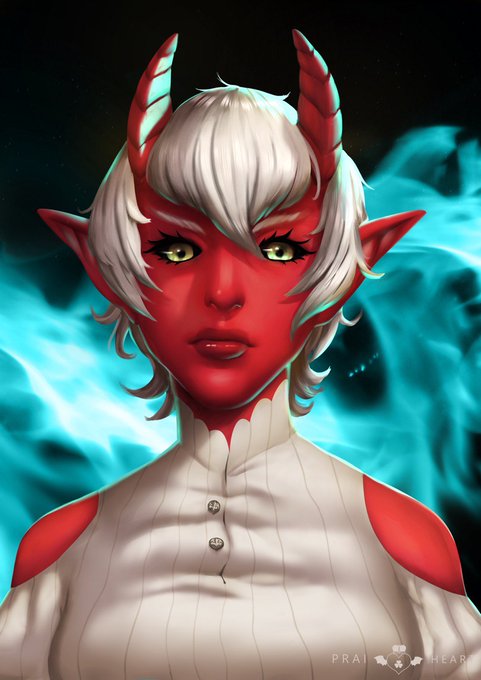 Portrait of my tiefling, Wrathia, my first ever role character. (was quite obsessed with Ava's Demon at the time)