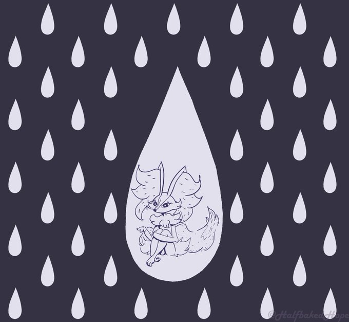 Ah yes, it seems I'm going for a drawing combo lads. Smol #Braixen enjoying the rain, take good care of her ❤️🦊