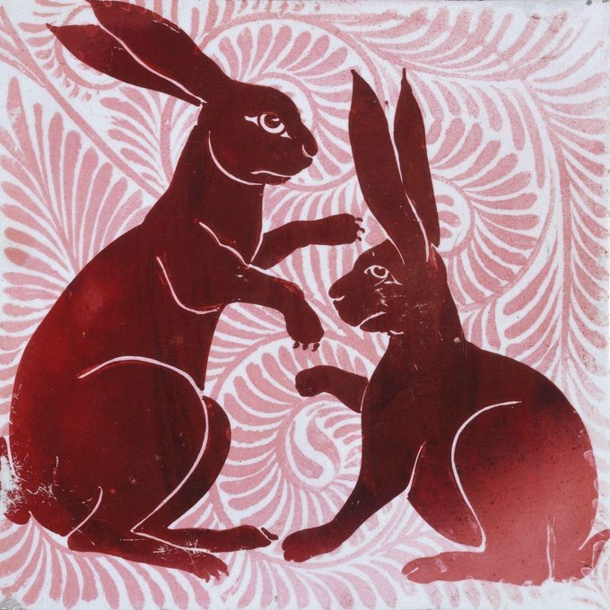 Jolly Jackrabbits: Celebrating March 1st with depictions of these long-eared lovelies: Lewis Carroll's 'March Hare' by John Tenniel (1865) & Arthur Rackham (1907) and terrific tiles by William de Morgan (1880s)