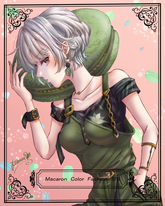 『Macaron Color Fashion 』 ◆Pistachio◆ #イラスト #マカロン #サロペット