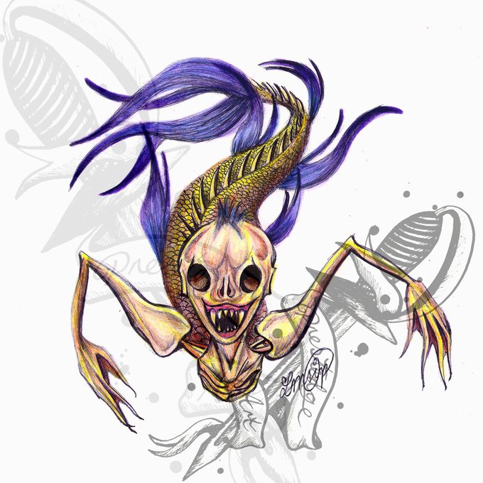 The Feejee Mermaid 🐟 Famously exhibited by PT Barnum as a real creature. Day 1 - #fish #inktober2020 #fijimermaid #feejeemermaid #Mermaid #TheGreatestShowman @inktober