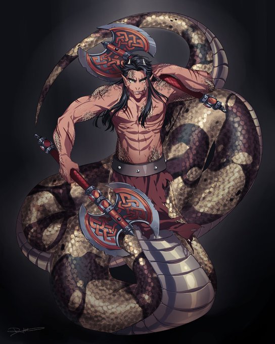 I'd like you all to meet my Barbarian-Warlord: Nobu the Naga/Yuan-Ti hybrid! #CrittersPC #CriticalRole