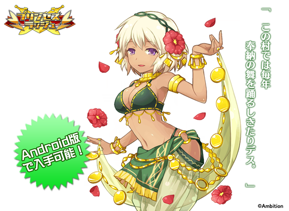 【Android版】で開催中の【祭りに舞う踊り子】の【6.これも仕事の内(上級のみ)】【1.ファティマの時間(超級のみ)】で一定の確率でドロップする【URユーリラ】はこちら♪詳細はゲーム内の【最新情報】にてご確認下さい。 #プリスラ