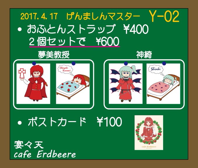 と、いう訳でげんましんマスターの配置決まったようですー 「Y02」ですー。donjuanさんの隣です。 大変なことになりましたがキーホルダーとか出します。教授と神綺さんの2種出しますよー 個人での初サークル参加なのでよろしく!