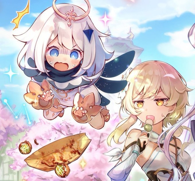 Notice that they have a picture with Paimon being with Lumine and a picture with Paimon being with Aether.