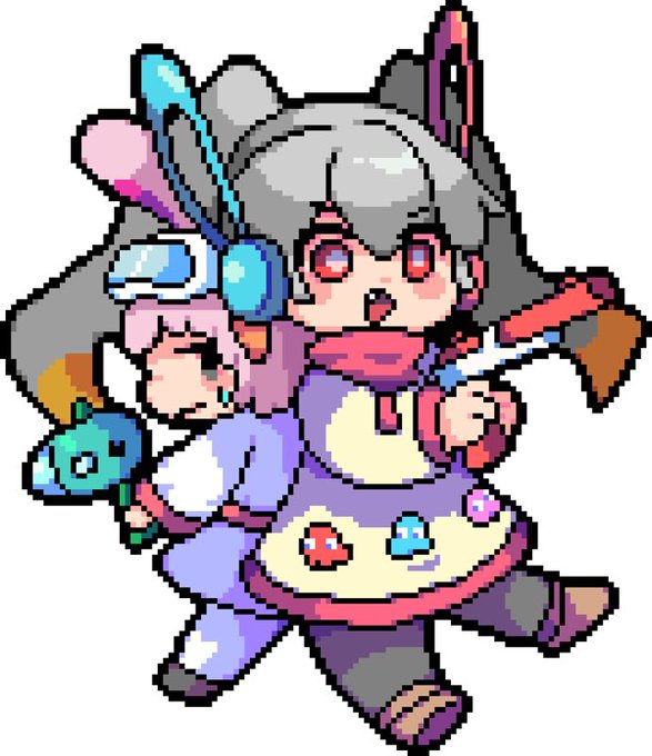 今回のアートワークはエガキゴウさん(@nouka_suitai)に手がけていただいてます!かわいいデフォルメとビビッドなピクセルアートがピコピコ大バトル!なんと今回は特典ステッカーも描き下ろしていただきました!