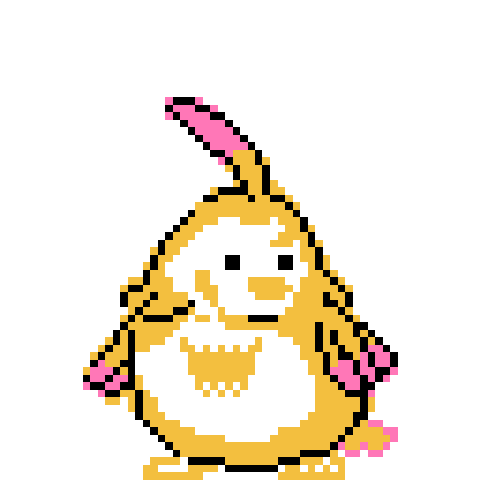 つねにアタックカンタのやべーやつ、昨日のドット絵募集の1枚目、ピピット族です ピピット族だったからちっちゃいスズメみたいなのと卵担当してる緑のやつが好きです。すれちがい通信利用してすぐ卵孵化させなきゃ···(使命感)