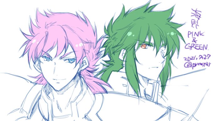 結局落書きしてしまった(ペン研ぎ) 海のピンクandグリーン。 サークレット無しだと誰だかわからないイオぴとサークレット有ると誰だかわからないザックん…
