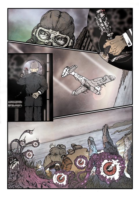 AREA X:UPDATE-Whispering Place Page 4 Colours prior to final pass Working on thumbs for final 4 pages including the design of a VERY big flying boat @J_Ishiro @MachoDano @cowboy_steel @IndieCron @Doodle_Bags @muttman75