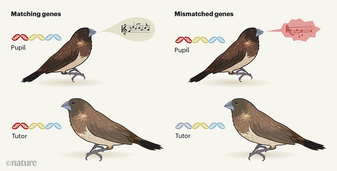 La capacidad de las aves para aprender una canción depende de sus genes, pero también de la compatibilidad con su tutor de canto. Este descubrimiento, publicado en @nature, aporta nuevos datos sobre cómo la interacción gen-ambiente afecta el aprendizaje.