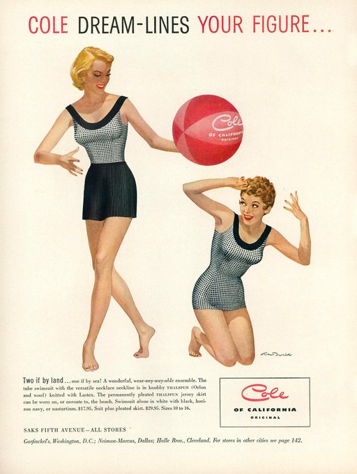 1953 Cole of California ad, illustration by Ren Wicks https://t.co/NMg5SSMiYM