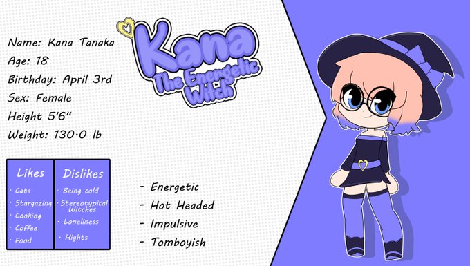 Kana is a young witch student who usually doesn't think about her actions before doing them, which sometimes causes her to get in trouble in some way...