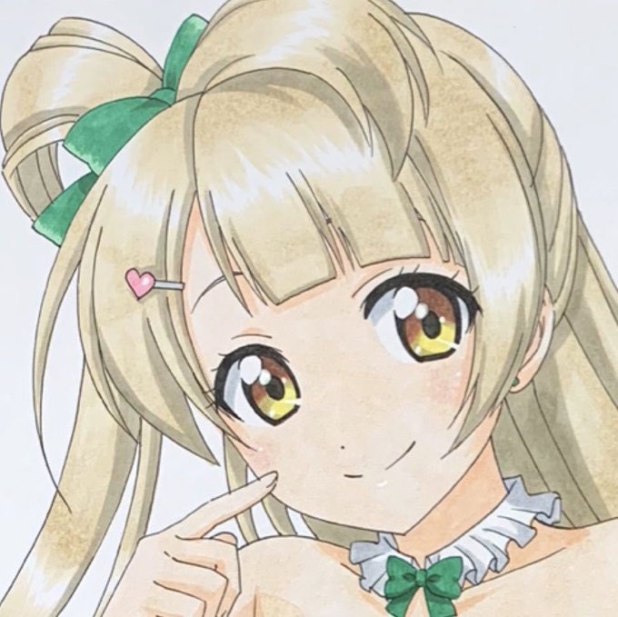 ことり 同人 手描き イラスト ラブライブ!南 ことり 水着2 色紙 27×24㎝ リボン 緑 笑顔 #ヤフオク 残り30分です。よろしくお願いします!
