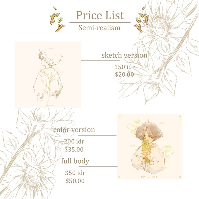 Now I'm opening new commission semi-chibi and semi-realism style with flower theme 🌸