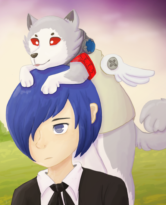 Redrawing the one scene from Persona Q because Koromaru is a good boy