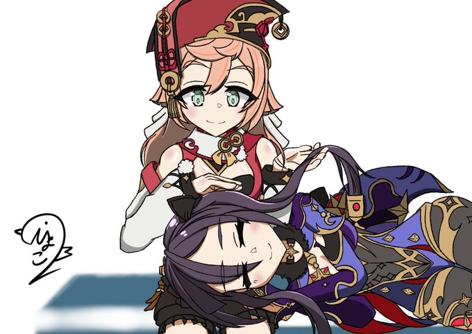 煙緋とモナ、 好きな2人を描きたかったんだぁ! #原神
