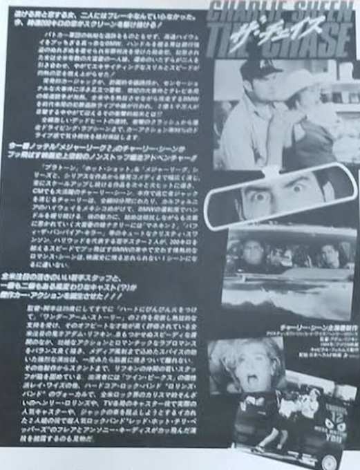 『ザ・チェイス』(1994年)★4つ。リアタイ観賞。チャーリー・シーンが製作総指揮と主演を兼任。銀行強盗の無実の罪を着せられた男が、大富豪の娘を人質にとってしまい逃避行を繰り広げる・・・。アクションコメディだが、コメディ色は薄め。