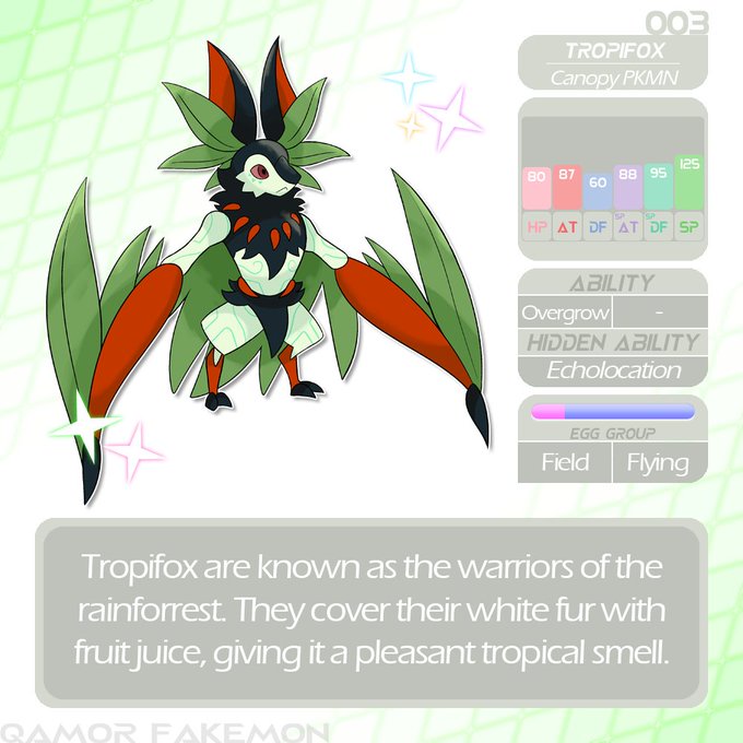 003-Tropifox, Grass/Flying. Final stage of my grass starter line #fakemon