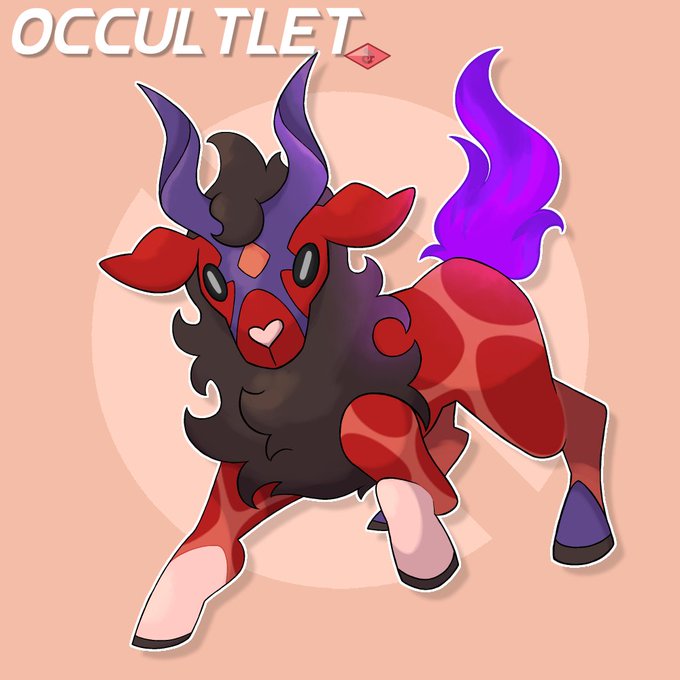 005- Occultlet, Fire. Kindlet has evolved to the aggressive- and kinda morbid looking- Occultlet! 🐐 #fakemon