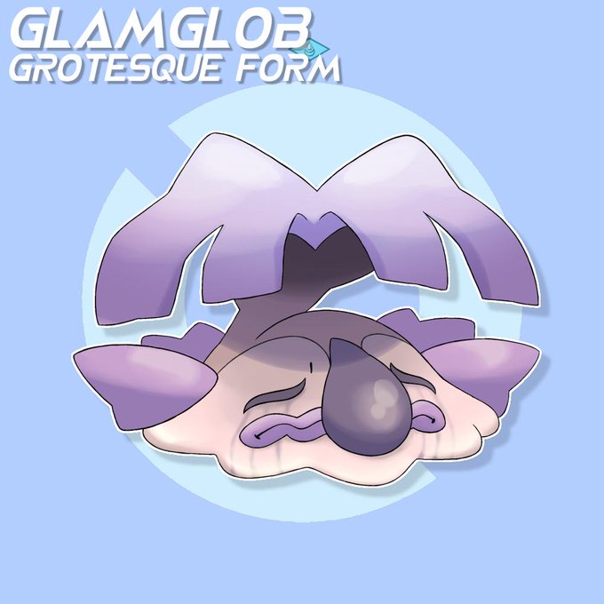 113- Glamglob Grotesque Form, Water. Due to its ability Gelatinous, Glamglob will turn into its Grotesque Form when taken out of water and lose it's psychic typing 🤡#fakemon