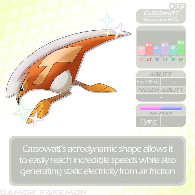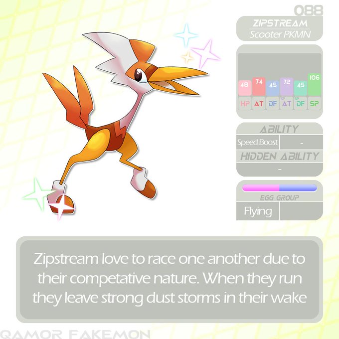 089- Cassowatt, Electric/Ground. They have evolved in order to be as aerodynamic as possible as to reach higher speeds without worrying about air drag. Many race car designers have used them as inspiration in designing the fasted cars in the world 🏎️ #fakemon