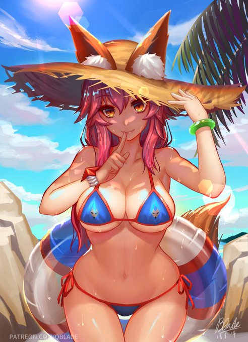 暑いー!!暑すぎる! だから水着のタマモちゃん絵! #FGO #玉藻の前 #キャス狐