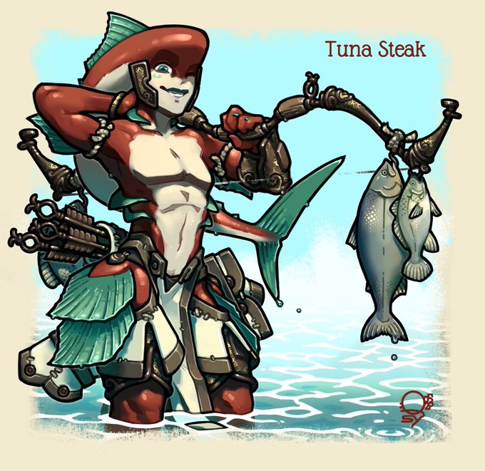 New Patreon picture ! My Zora OC Tuna Steak with some lesser fish she caught :3