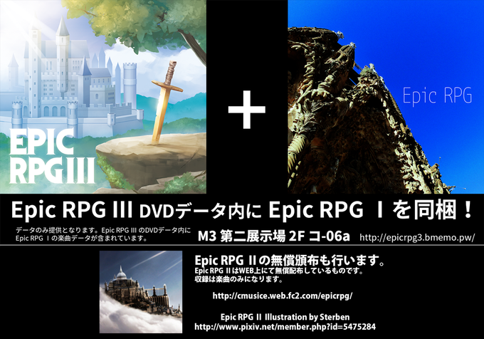 来週25日の M3にて頒布するEpic RPG Ⅲのデータ内に Epic RPG Ⅰを同梱します。Epic RPG Ⅰ現物をお持ちいただければEpic RPG Ⅲを700円から500円にしようと思います コ-06aへぜひどうぞ!