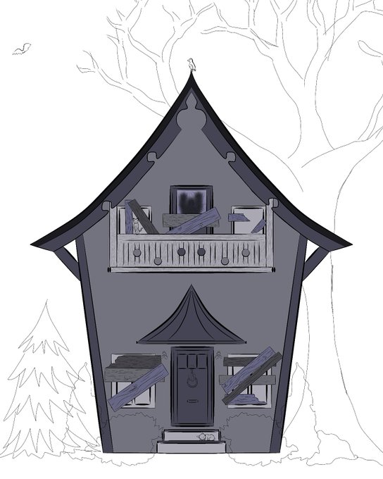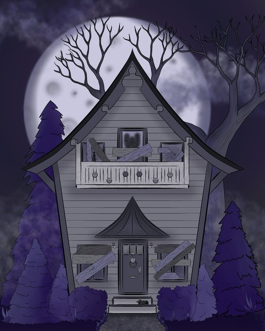 I present to you... my cute haunted house, monochromatic. #ArtistOnTwitter #DigitalArtist #spooky #haunted #illustration #artwork