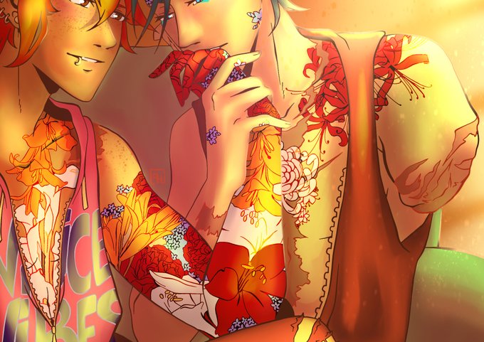 Soulmate AU where the scars your soulmate gets blooms as colorful flower tattoos on you 🌺🌻🌼🌷