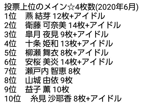 投票も5位になったのに今年まだ☆4も1枚で合計8枚は明らかに少ないし下半期はちゃんと結果も反映して枚数増やしてほしいです