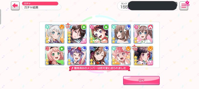 サブアカで星4当たったけどもうまやちゃんの✨のタイプ持ってるんだよなぁ… せめて違うタイプ欲しかった… #バンドリ #ガルパ