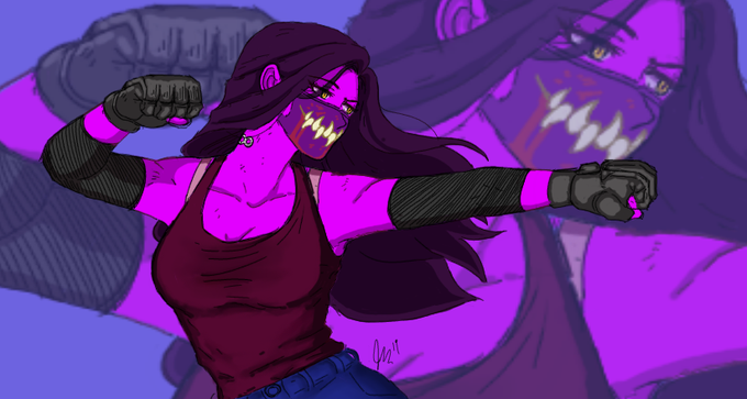 #art #anime #digitalart #Creative #fighting #girlwithmask #Purple #originalart