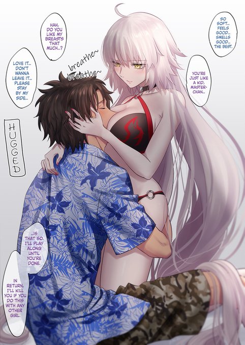 @meganekureyo Fujimaru, sexually harassed by Jeanne Alter-chan.