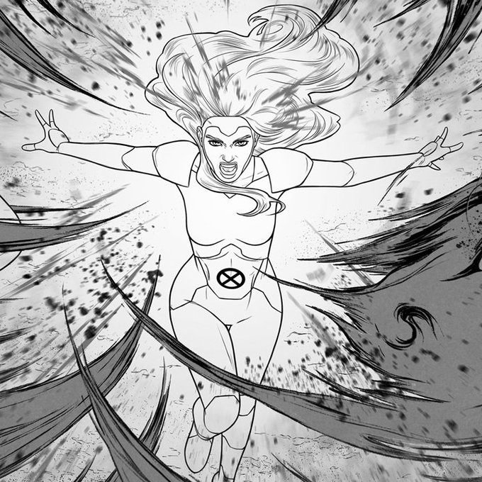 Some process for one of my favorite panels. GIANT-SIZE X-MEN: JEAN GREY + EMMA FROST — drawn by me, colored by @COLORnMATT!