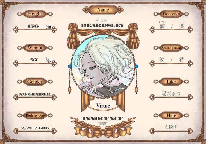 ✧純潔✧ Beardsley《バーズレイ》 【@kokorohitoe 】 「この純白は汝を染めるに足らない」 #救いの晩餐 #救いの晩餐_CS