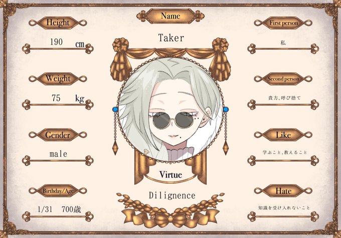 ✧勤勉✧ Taker《テイカー》 【@Yuni_Fuji_ 】 「さあ、学びましょう。知識を恐れないで。知ることを受け入れて」 #救いの晩餐 #救いの晩餐_CS