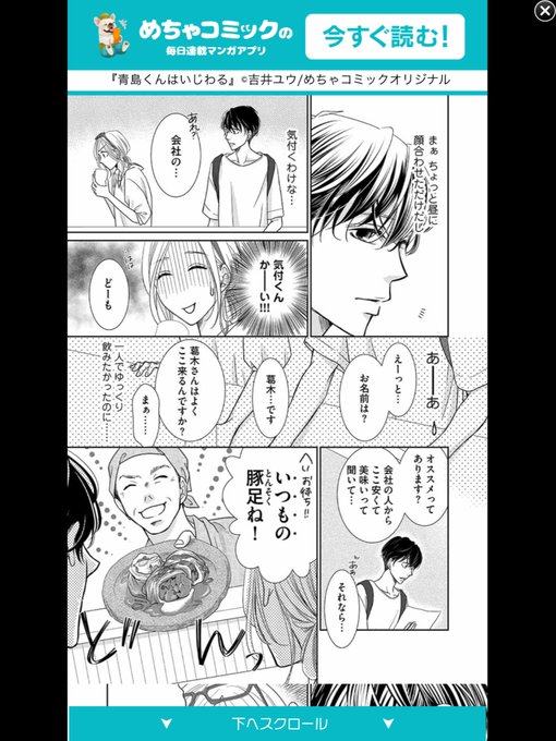 最近ずっと動画広告で出て来ていつも⊗ボタン押して通り過ぎてたけど今日ズリズリスクロールして読んでみたらめっちゃ面白そうだった💞 なんだけど…(続く #青島くんはいじわる #吉井ユウ