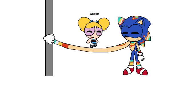 Bubbles: Hey Rubber Sonic, can your arm be my jump rope? I couldn't find my old one anywhere