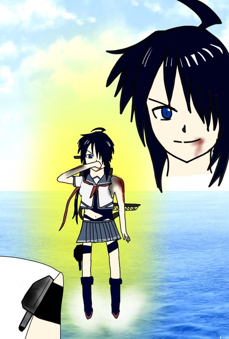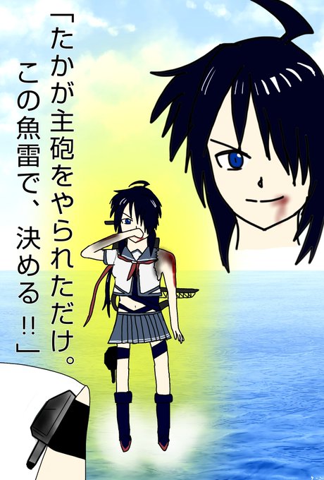 今日は加古の進水日! なので描きましたよ! 410って死闘って読める気がするから主砲を完全に破壊され、魚雷に全てをかける感じの加古さん。