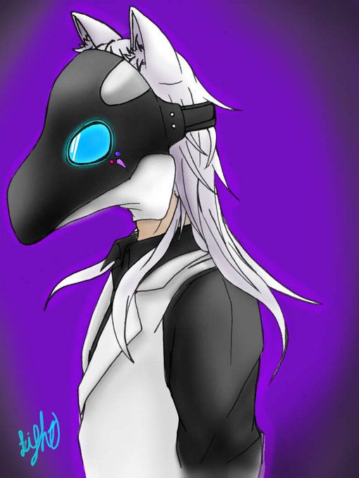 シャチ×ペストマスク×狼で久々に創作イラスト