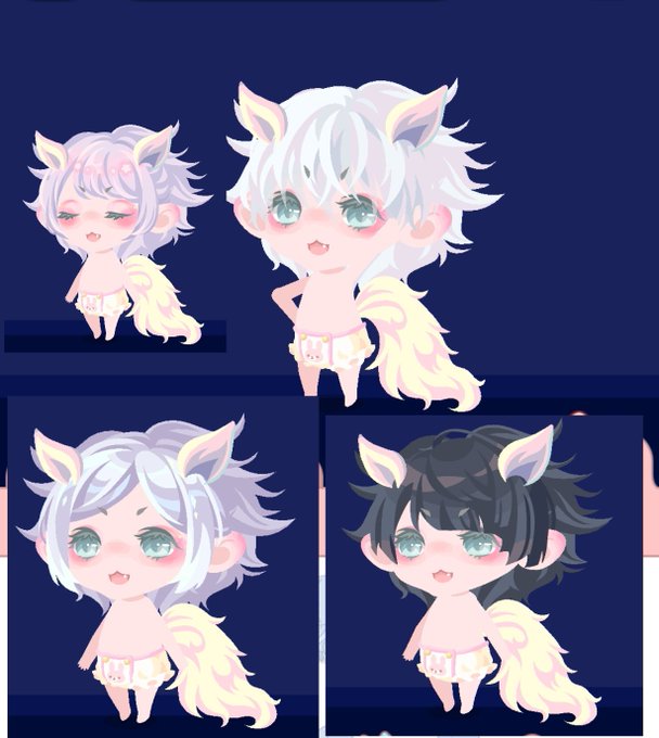 淡くピンクがかった白なのでやはり淡い髪の毛に合わせやすい。個人的には右上の髪に合わせるのが好きです上左もよきですね。後ろ姿も尻尾派手でよきです