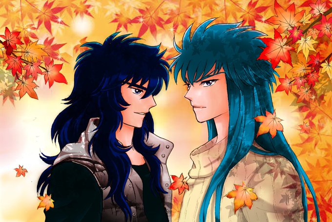 #聖闘士星矢 紅葉シーズンが終わってしまう💦 結局、蠍座月間に何も出来ずに終わったので元々考えてた紅葉で(^-^; 紅葉が進まずどうしようかと思った。綺麗に塗れない(´;ω;`) 日本に2人で観光旅行にきた感じで~