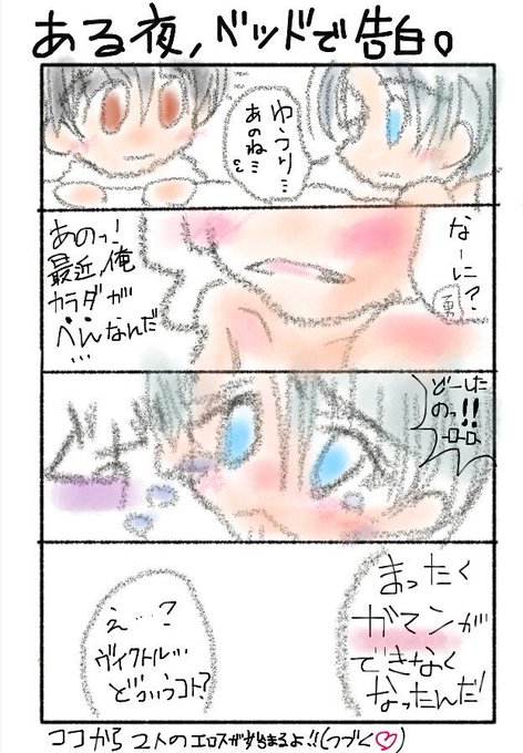 ある日ベッドでヴィに性の悩みを打ち明けられるユウリくん。そこから始まる体当たりのエロスのお悩み解消談を……💕