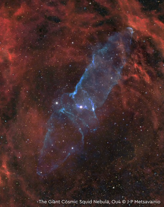The word nebula in astronomy means any object that appears cloudy or ‘nebulous’. This squid-shaped nebula, Ou4, may be the result of vast ejections of gas streaming from a system of three massive stars at its centre. However this is still uncertain #astrophoto2019 @JP_Metsavainio