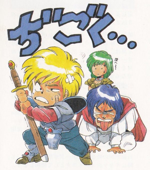 Some cute illustrations from the Japanese manual for the original Legend of Heroes (aka Dragon Slayer VI!) #Falcom