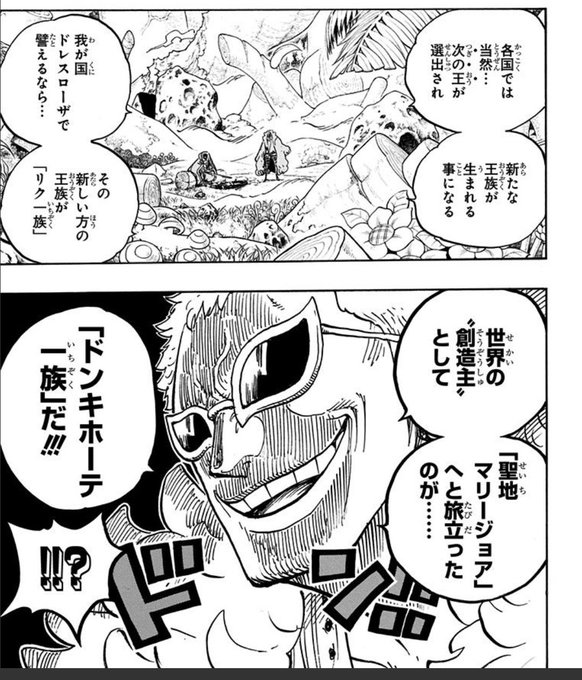 遥か昔から900年前までドンキホーテがトンタッタを支配し、その後空白の百年に何があってマリージョアへ。800年前王位についたのがリク家…か
